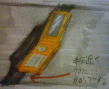 今日外で携帯を取り出したとき、うっかり地面に落としたんだが、その状態が図の通り。