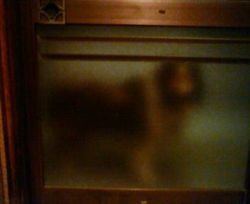 知ってる犬さんなんですが、いきなりガラス越しにいると驚く。