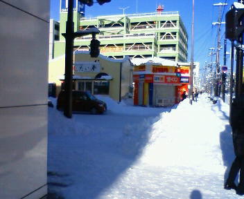 ゆき。柔らかくてふわふわなので、車がばんばん通って踏み固まるはずの場所もまだふかふかしてたりする。