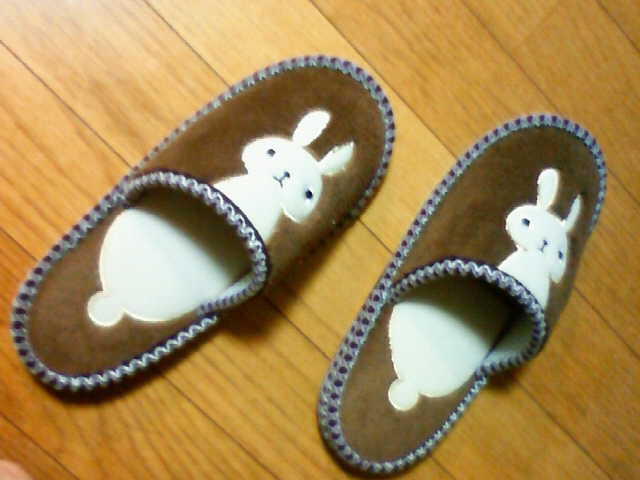 いくら言われてもスリッパを履きたがらない私のためにおかんが厳選してきた可愛くてもこもこのスリッパ(380円)。