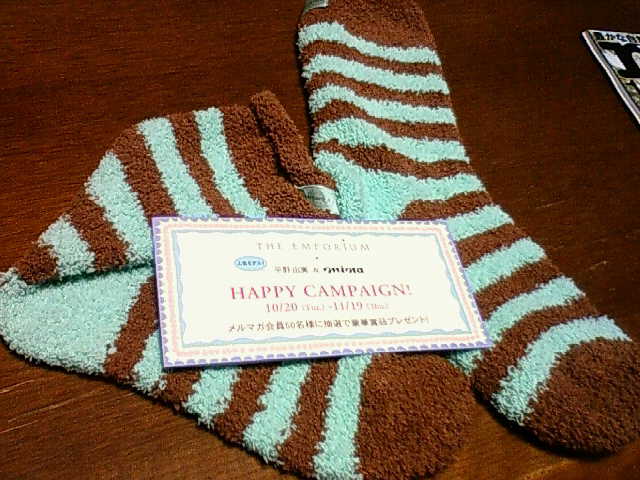 画像はエンポリアムで買い物した時、貰ったもこもこソックス。自分は履かないので家族や犬に押しつけてます。