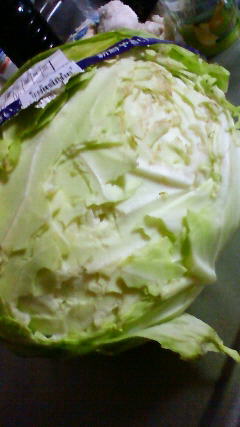 留守にしてる間、モモが床に置いてあったキャベツをかじっている。