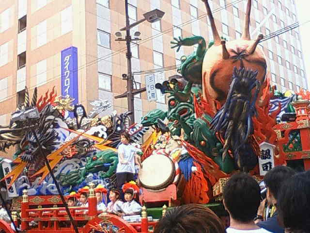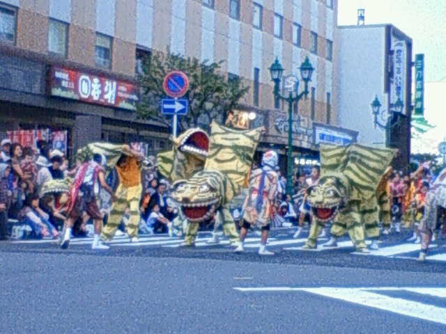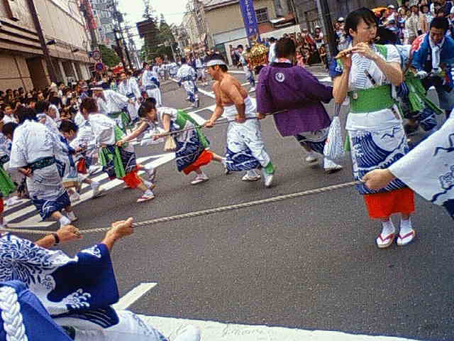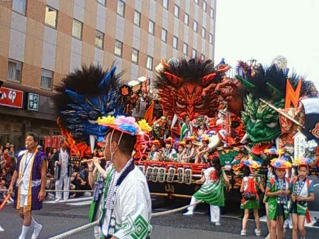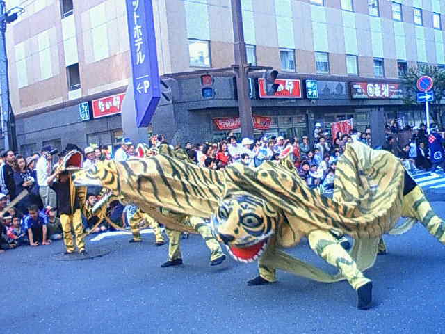 交差点を曲がる引き手や山車の迫力、虎舞、獅子神楽が少し開けた場所で見せるパフォーマンス。とかね。