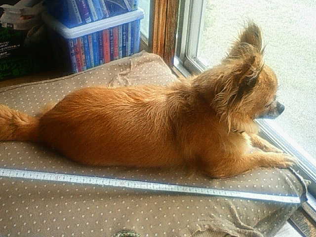 足の端からしっぽの端まで。 およそ60㎝。 な、長くね? しっぽは中身のあるとこだけでも55㎝。 な、長い。 チワワってもっと小柄じゃないっけ。