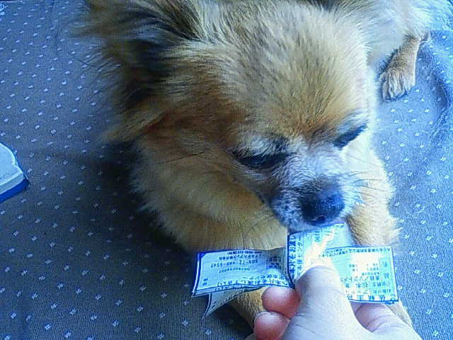 あ、こら! 誰かが運んできた郵便物や配布冊子なんかをチェックしています。 隙あらばガブリ。