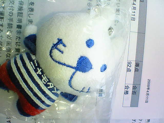 自分が通ってる自動車学校のキャラクター。自習で合格点出すとストラップもらえます。